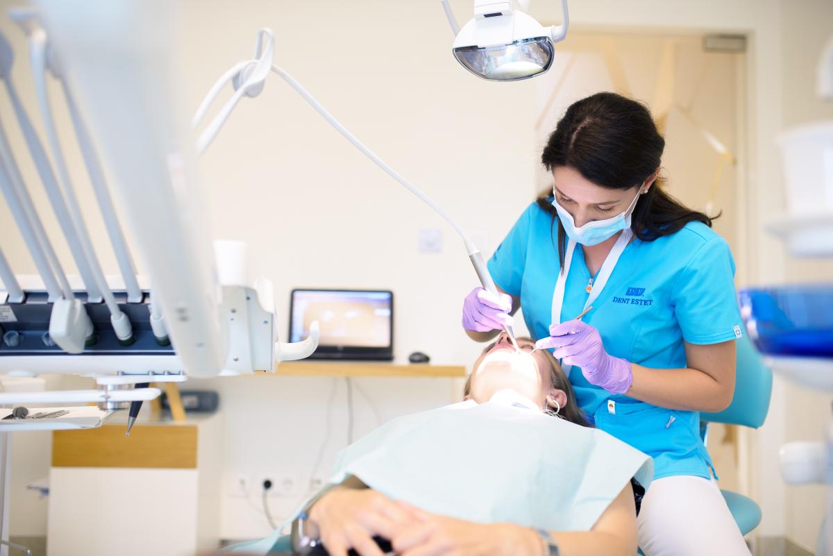 - Curățarea profesională a dinților – precum îndepărtarea plăcii dentare, a tartrului și a bacteriilor din cavitatea bucală.