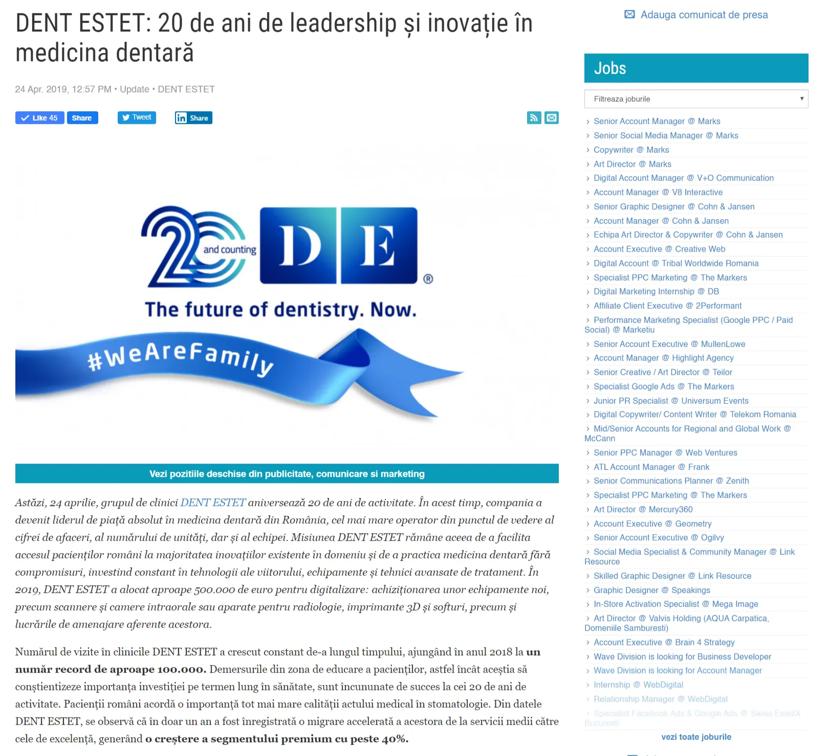 DENT ESTET: 20 de ani de leadership și inovație în medicina dentară