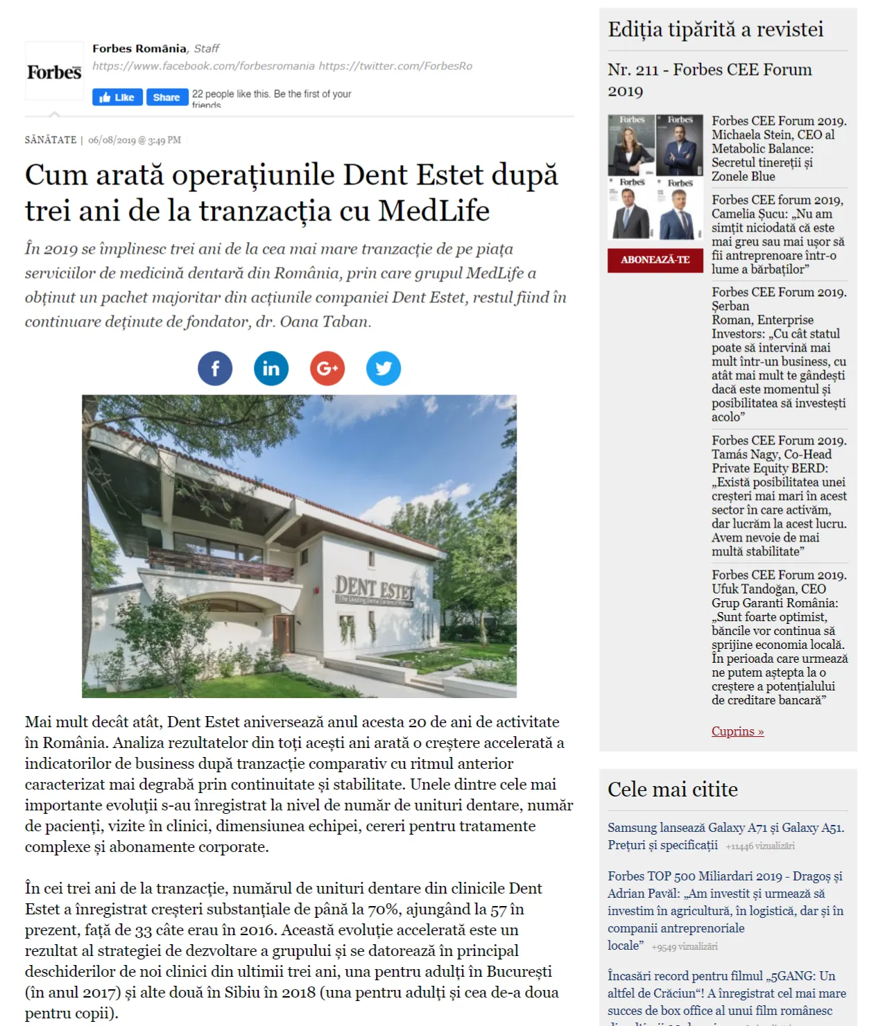 Cum arată operațiunile Dent Estet după trei ani de la tranzacția cu MedLife