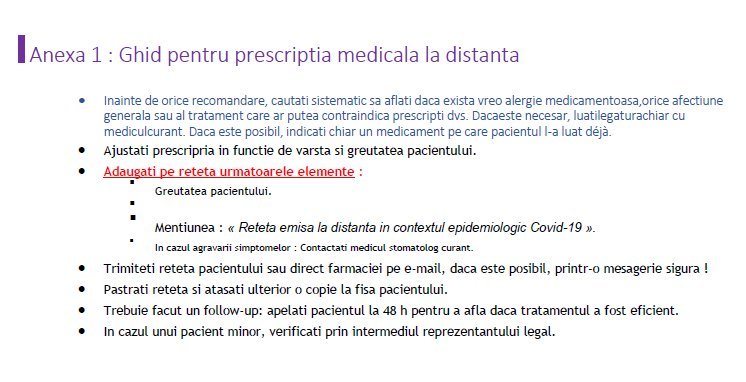 Pentru asistenta stomatologica la distanta in cadrul epidemiei Covid-19