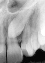 Infecțiile de la vârfurile rădăcinilor sunt reprezentate de zone în principal rotunde gri sau negre. Dacă aceste zone sunt mai mari și mai bine conturate, atunci diagnosticul se îndreaptă către un chist sau un granulom apical.