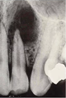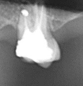 - Albul puternic de pe radiografie poate reprezenta o obturație (plombă), un pivot corono-radicular, un implant, chiar și suprapunerea a doi sau mai mulți dinți